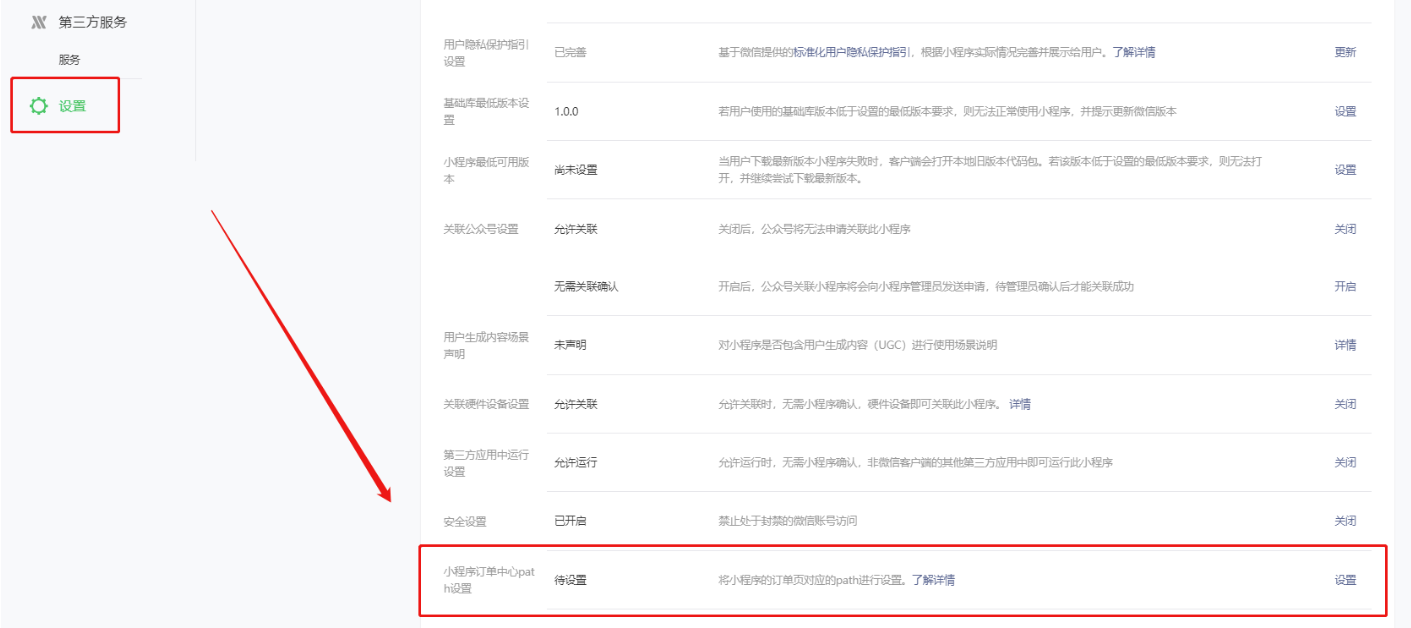 新增了设置path设置:代码提审环节设置订单中心path,填写: /packageA/member/myOrder_v2/myOrder_v2